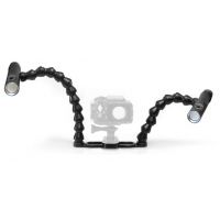 Platine pour caisson étanche photo/vidéo + deux bras flexo avec embout rotule Ø25 pour lampes de plongée compactes