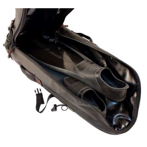 Permet de transporter facilement à vélo, à moto ou à pied l’équipement de chasse sous-marine, y compris une paire de Palmes longues