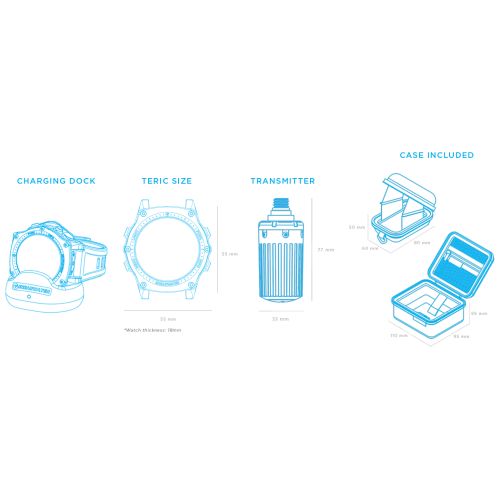 Commandes intuitives et navigation dans les menus avec un affichage aux couleurs vives et lumineuses. Avec un haut degré de personnalisation, le Teric apporte aux plongeurs une montre et un ordinateur de plongée aux capacités sans précédent.