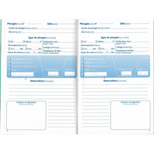 Carnet de 75 plongées (bilingue français/anglais)