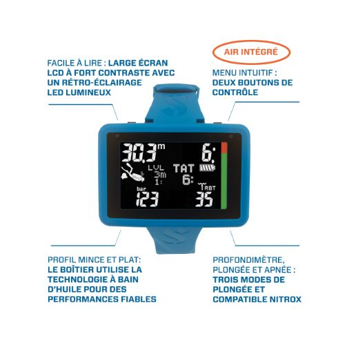 Conçus pour être facilement lisibles, les ordinateurs de plongée de poignet Luna 2.0 sont dotés d’un grand écran d’affichage à fort contraste et d’un rétroéclairage LED lumineux.