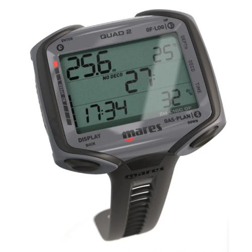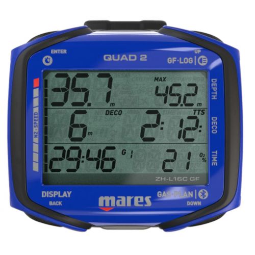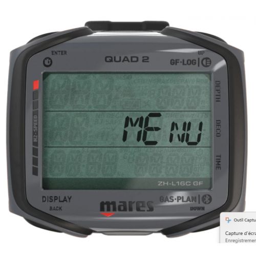 L'ordinateur de plongée Mares QUAD 2 allie technologie avancée et design convivial. Avec un écran cristallin, l’algorithme Bühlmann ZH-L16C, une compatibilité multi-gaz et un Bluetooth intégré, il garantit précision et sécurité. Grâce à une capacité de journal de 100 heures, au suivi TTS et à une batterie remplaçable, c’est le compagnon idéal pour des aventures sous-marines inoubliables.