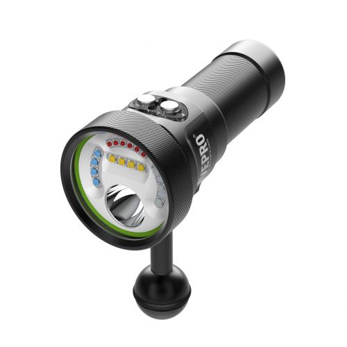 Le Divepro M35 V2 est le phare multifonction de la marque DIVEPRO avec un faisceau large et un faisceau concentré, ainsi qu’une lumière rouge, bleu et UV.
